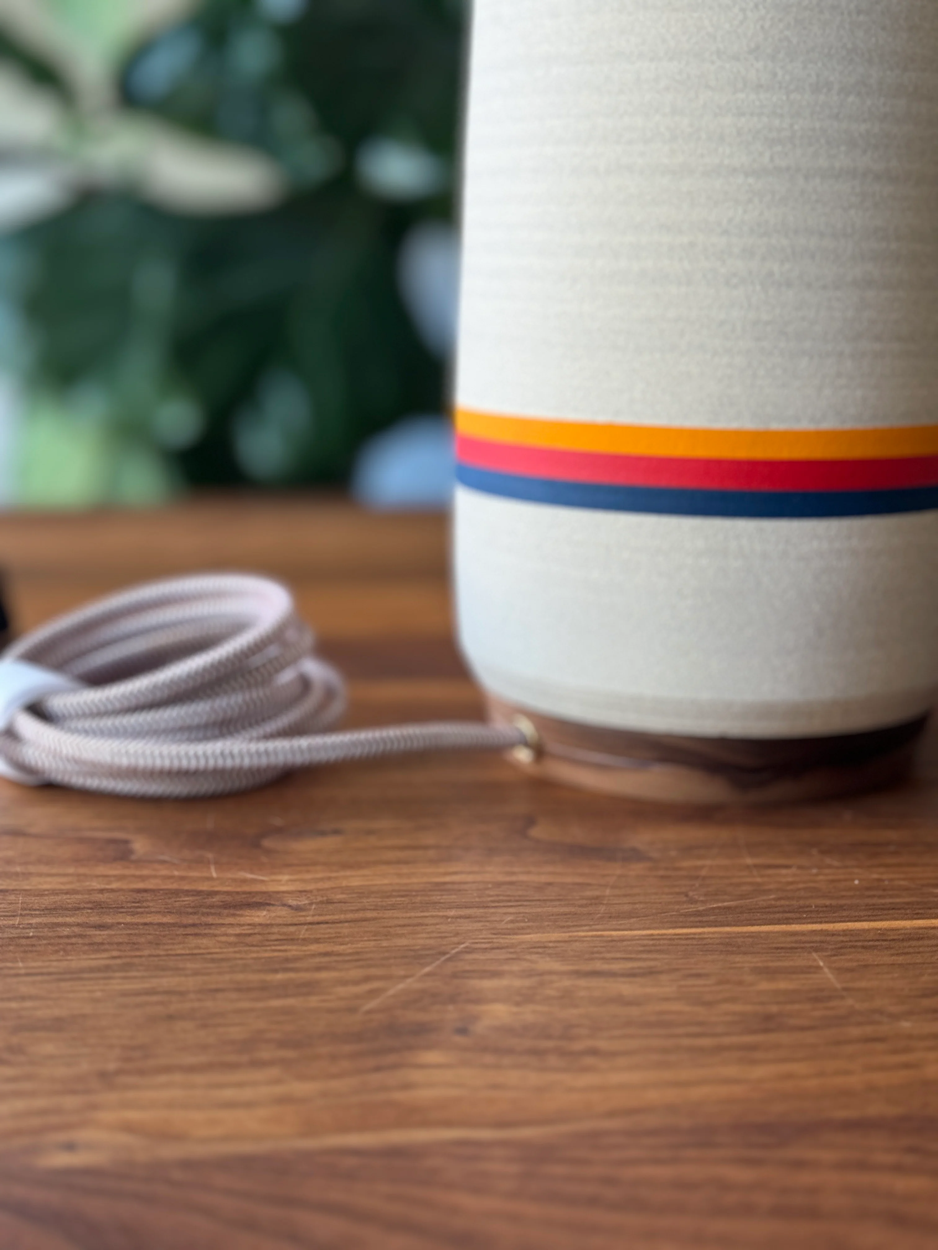 Tall and sculptural, this modern lamp is one of our very first to have a brass neck. One of our favorite designs to throw on the wheel, and a classic mid century shape. This was originally a form that we just wanted to test, but we quickly fell in love with it.