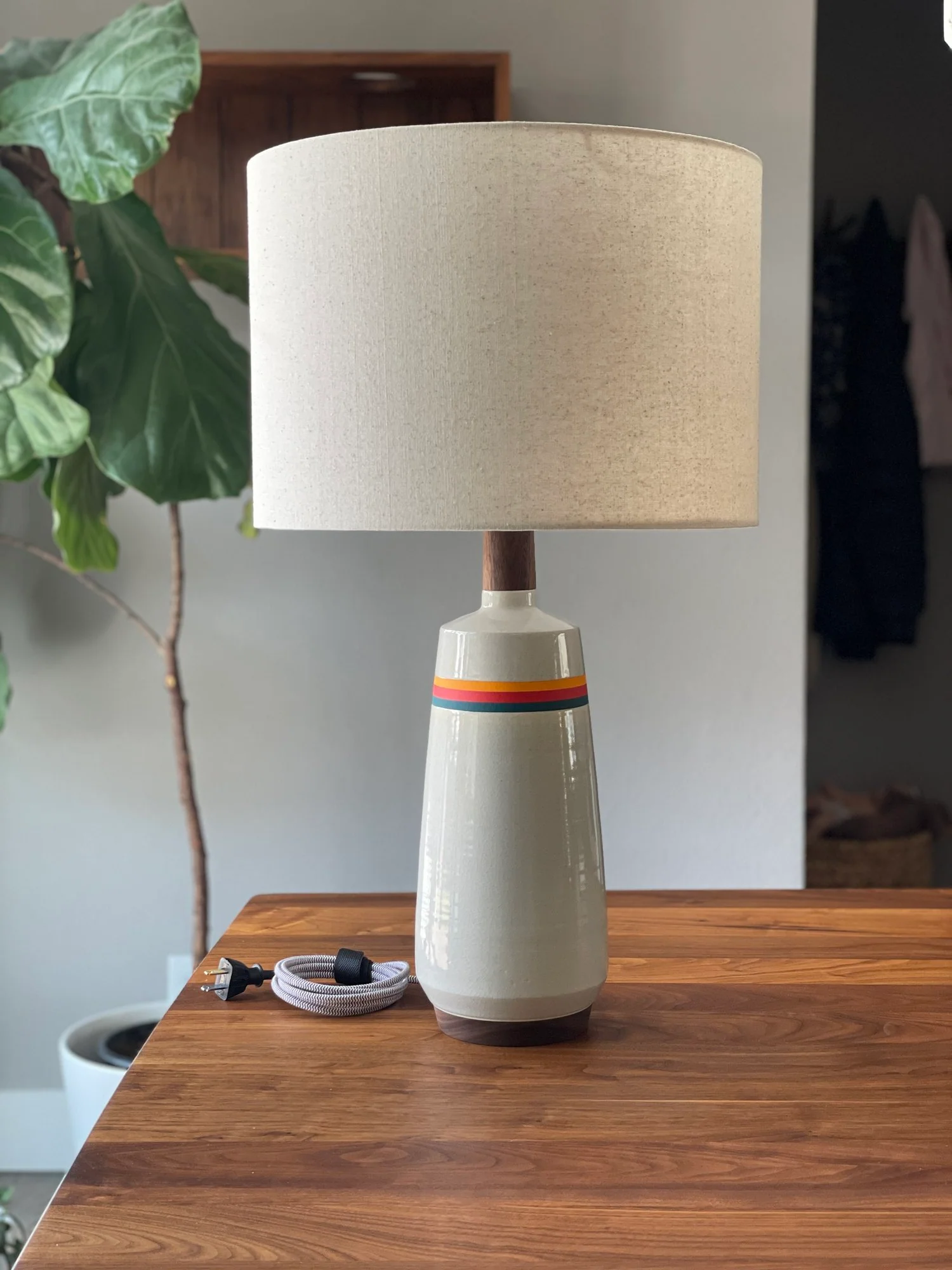 Tall and sculptural, this modern lamp is flexible and timeless in design. One of our favorite designs to throw on the wheel, and a classic mid century shape. This one feels like "the standard" to us, but that doesn't make it boring. Some of our very favorite glaze combinations lend so well to this form.Â