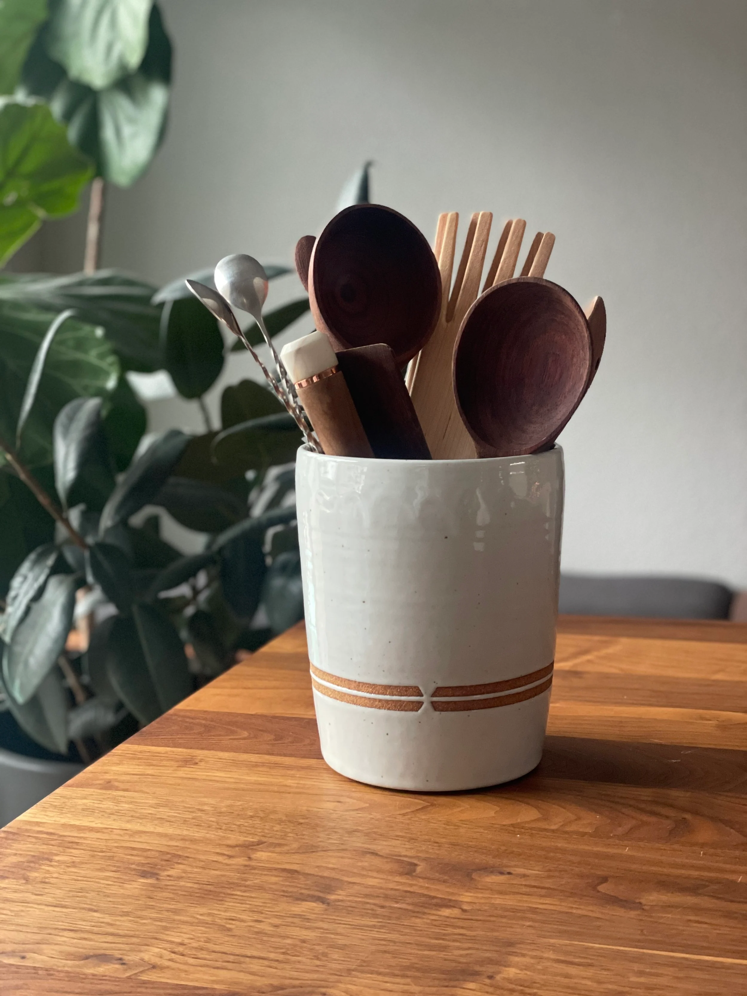 The perfect marriage of beauty and functionality. This addition to your countertop holds all of your favorite kitchen tools. If needed, it can also serve as a stem vase.