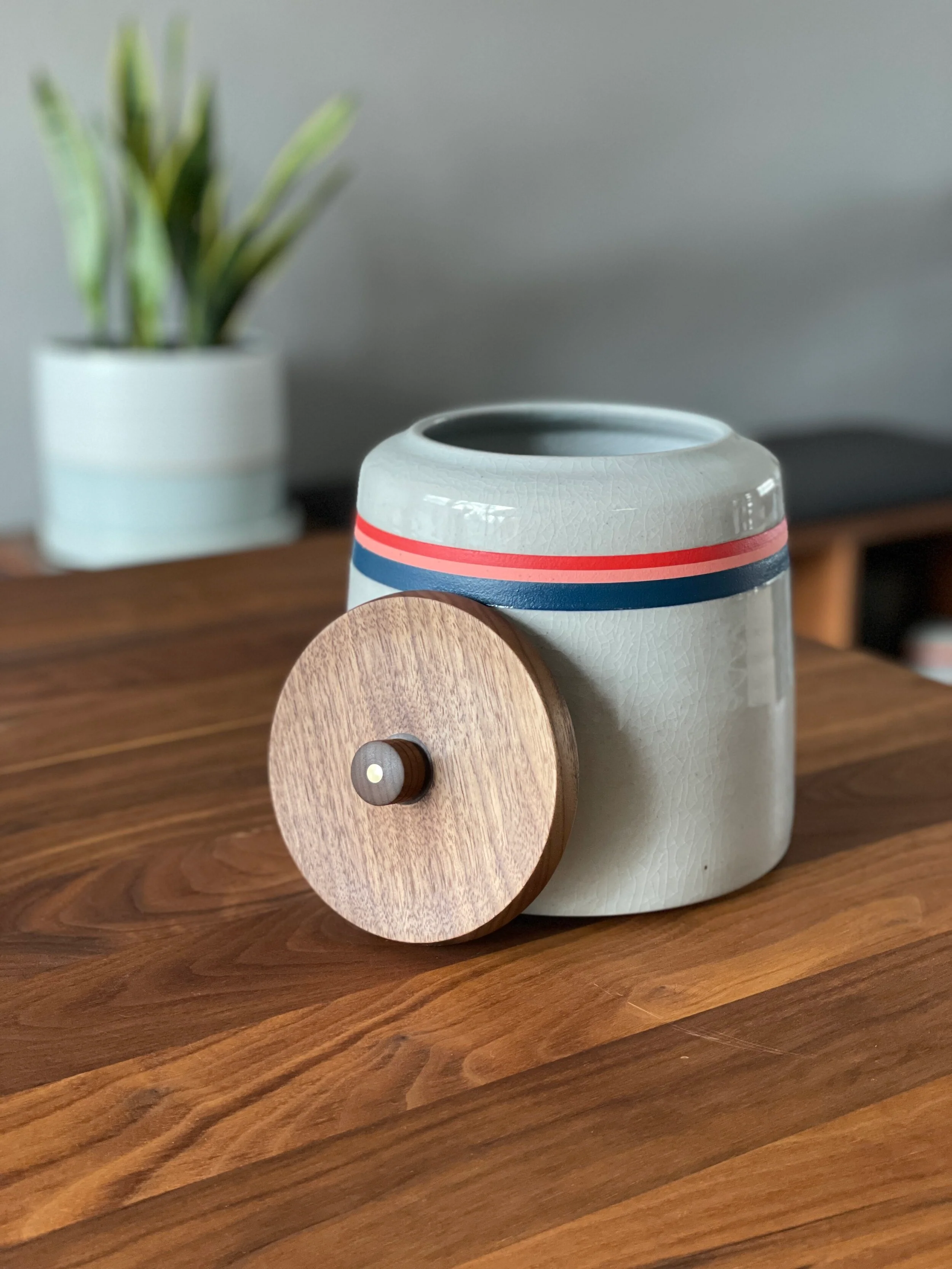 Wide and with soft curves, this canister is a stunning piece to leave on your countertops or open shelving to stash things away.Â